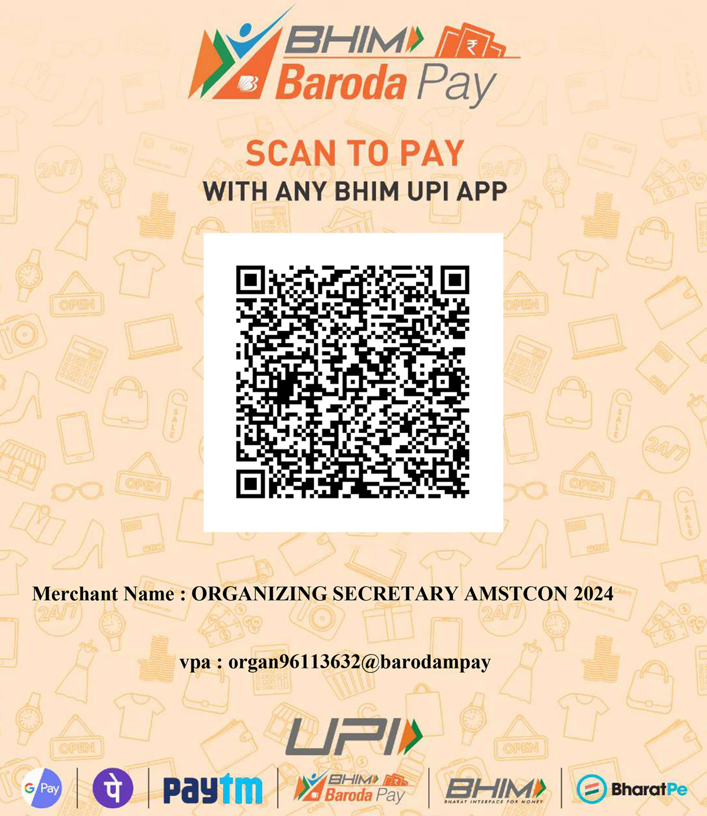 On successful completion of registration, a registration number will be allotted to the registrant. After registration, registrants are advised to take a print-out of the registration slip filed for further use. They may also send the registration number allotted, name of the delegate, category, amount remitted, Bank transaction number and date and the registration number allotted on completion of online registration, along with a scanned copy of the certificates concerned to amstcon2024@gmail.com